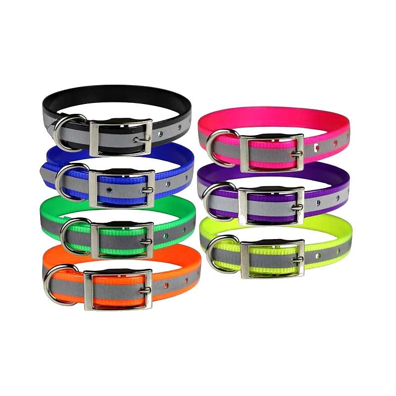 Our 1-inch wide reflective sunglo dog collar will help your dog be seen at night.